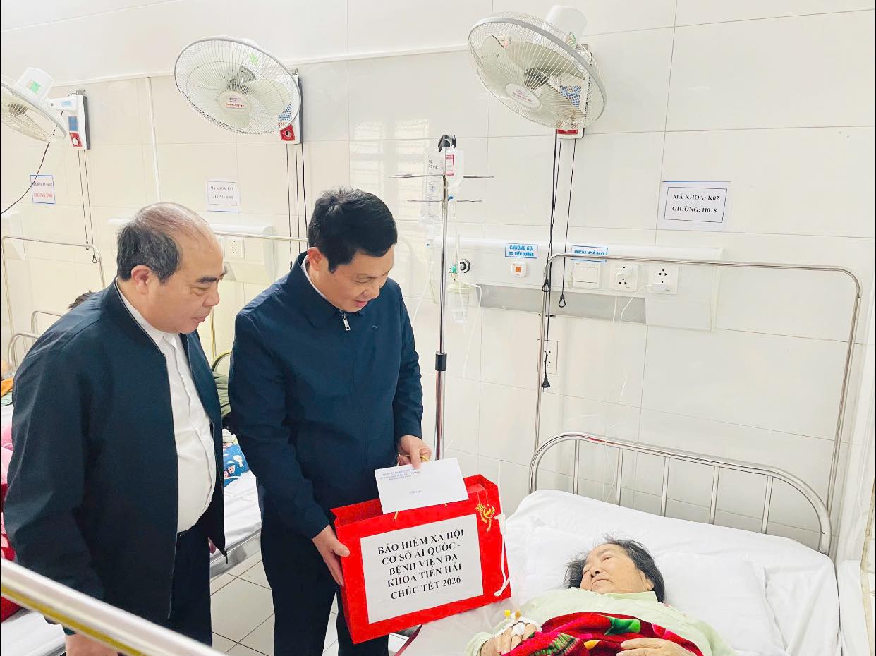 Ngày 09/02, nhân dịp Tết Nguyên đán 2026 đang đến gần, với mong muốn sẻ chia, lan tỏa yêu thương cho các bệnh nhân có hoàn cảnh khó khăn, ông Phạm Đại Hải- Giám đốc BHXH cơ sở Ái Quốc đã đến thăm hỏi, động viên và trao tặng quà cho các bệnh nhân có hoàn cảnh khó khăn đang điều trị tại Bệnh viện Đa khoa Tiền Hải.