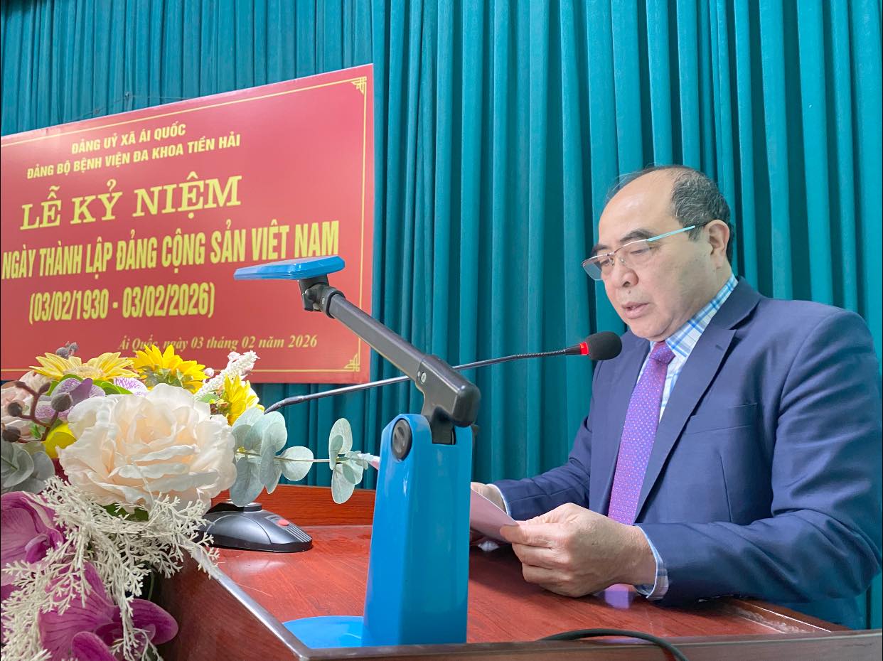 Chiều ngày 03/02/2026, Đảng bộ Bệnh viện Đa khoa Tiền Hải đã long trọng tổ chức Lễ kỷ niệm 96 năm Ngày thành lập Đảng Cộng sản Việt Nam (03/02/1930 – 03/02/2026). Đây là hoạt động chính trị có ý nghĩa sâu sắc, nhằm ôn lại truyền thống vẻ vang của Đảng Cộng sản Việt Nam, đồng thời củng cố niềm tin, bồi đắp lý tưởng cách mạng cho đội ngũ cán bộ, đảng viên trong toàn Đảng bộ.